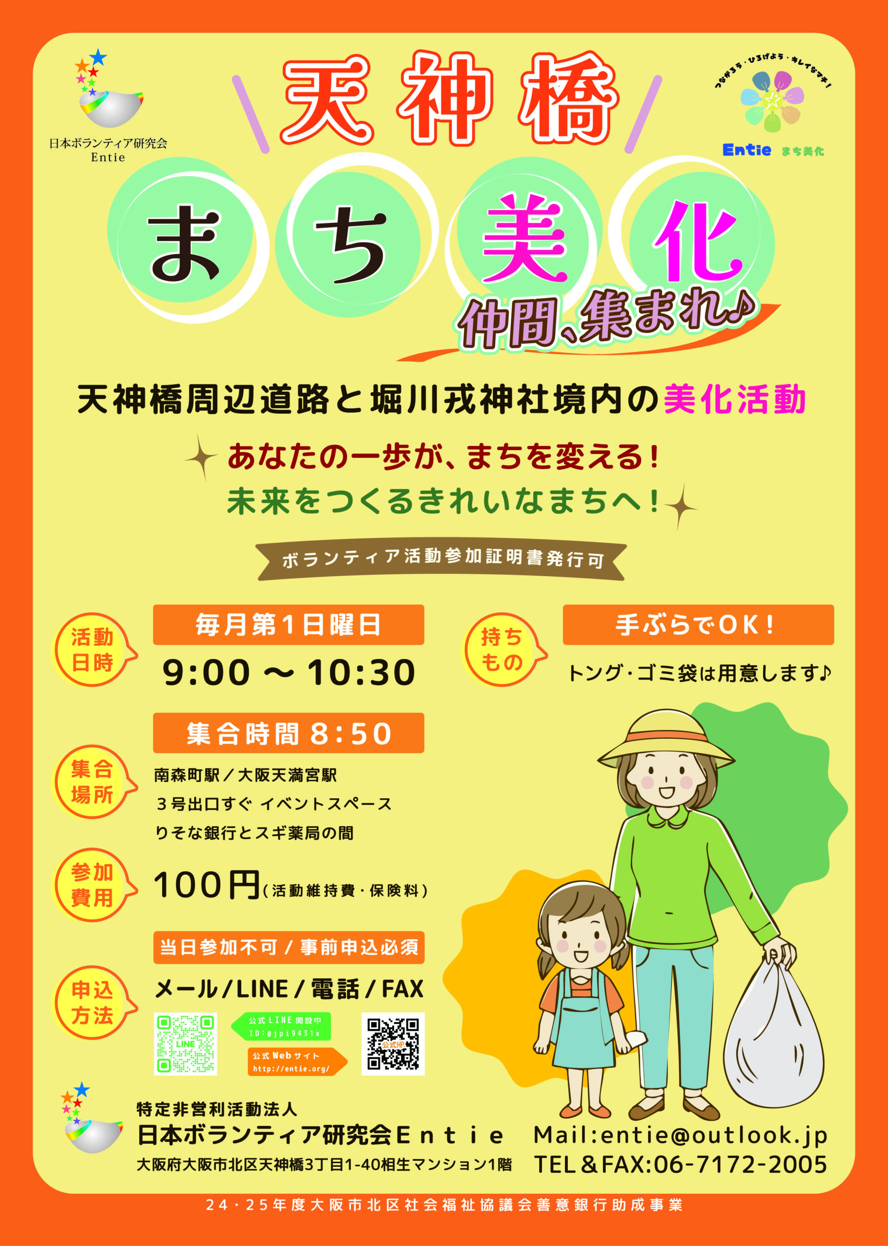 天神橋から堀川戎神社までを一緒に歩きながら、まちを整え、人とつながる時間 にしませんか?