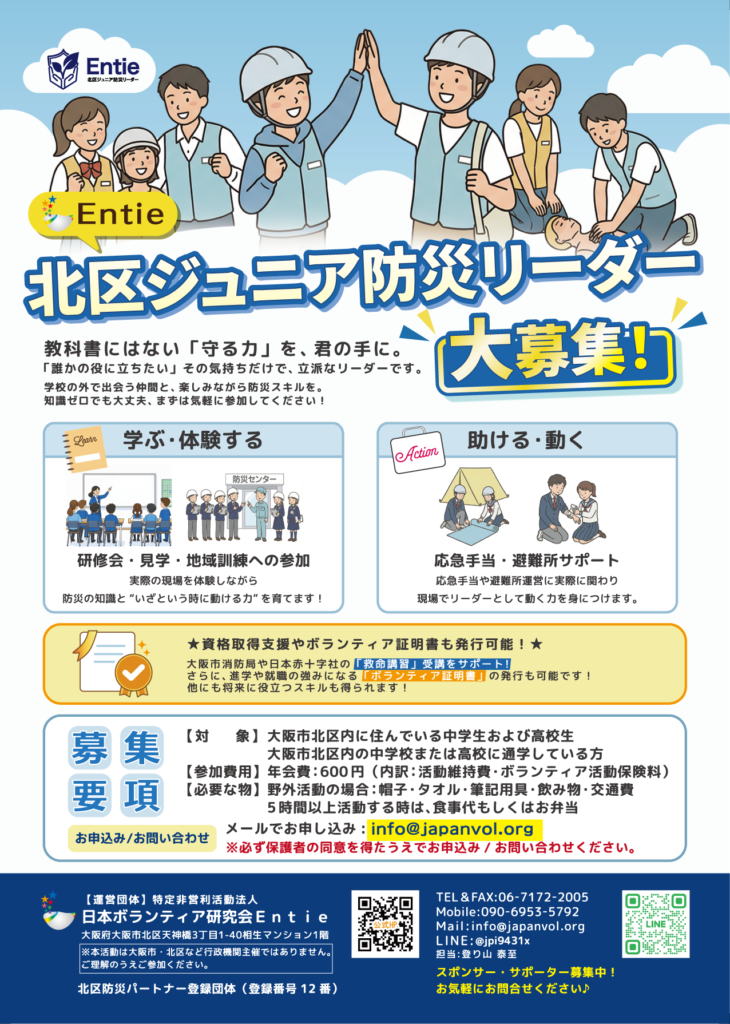 Entieは、北区防災パートナー登録団体です。(登録番号12番)